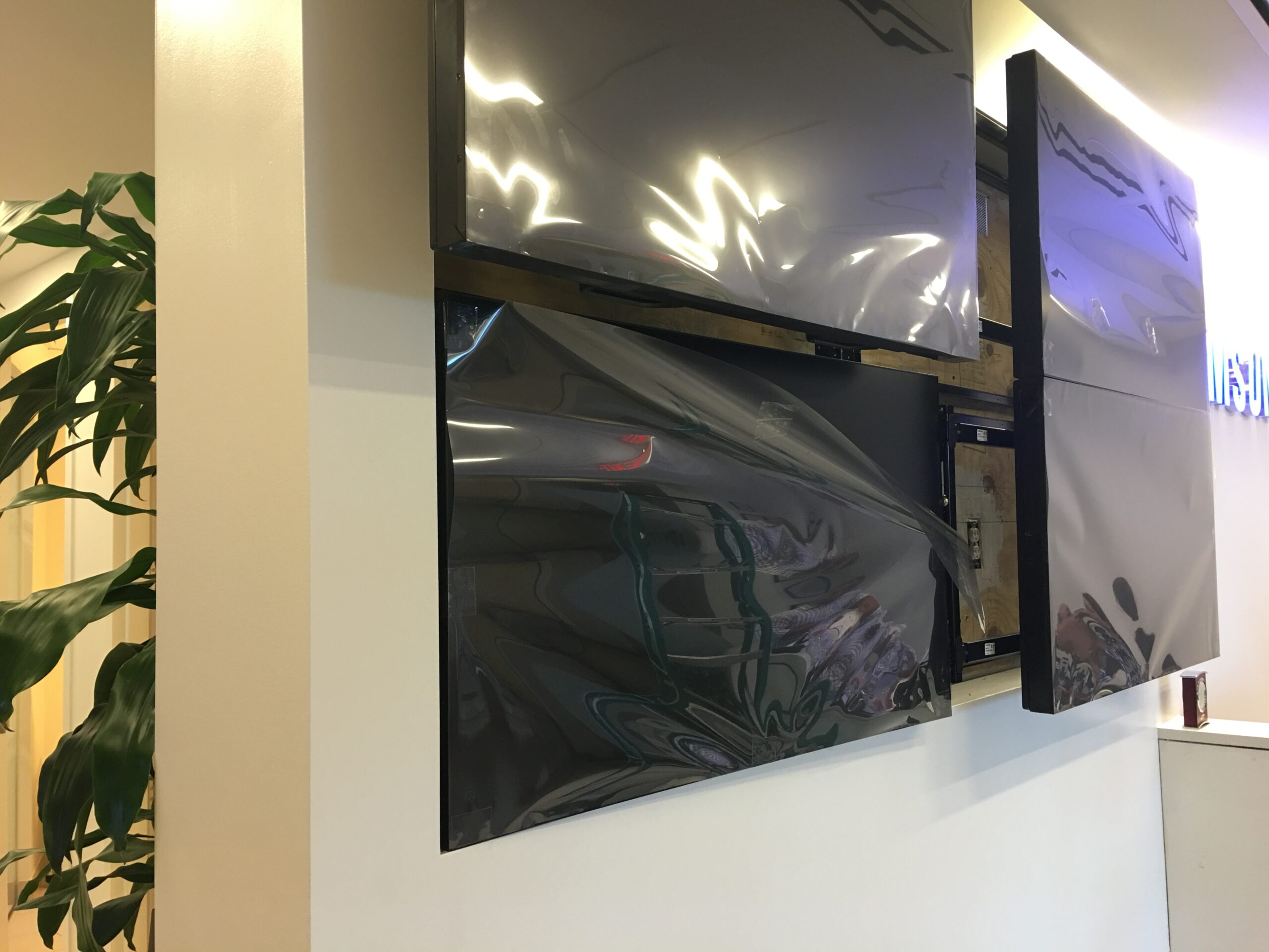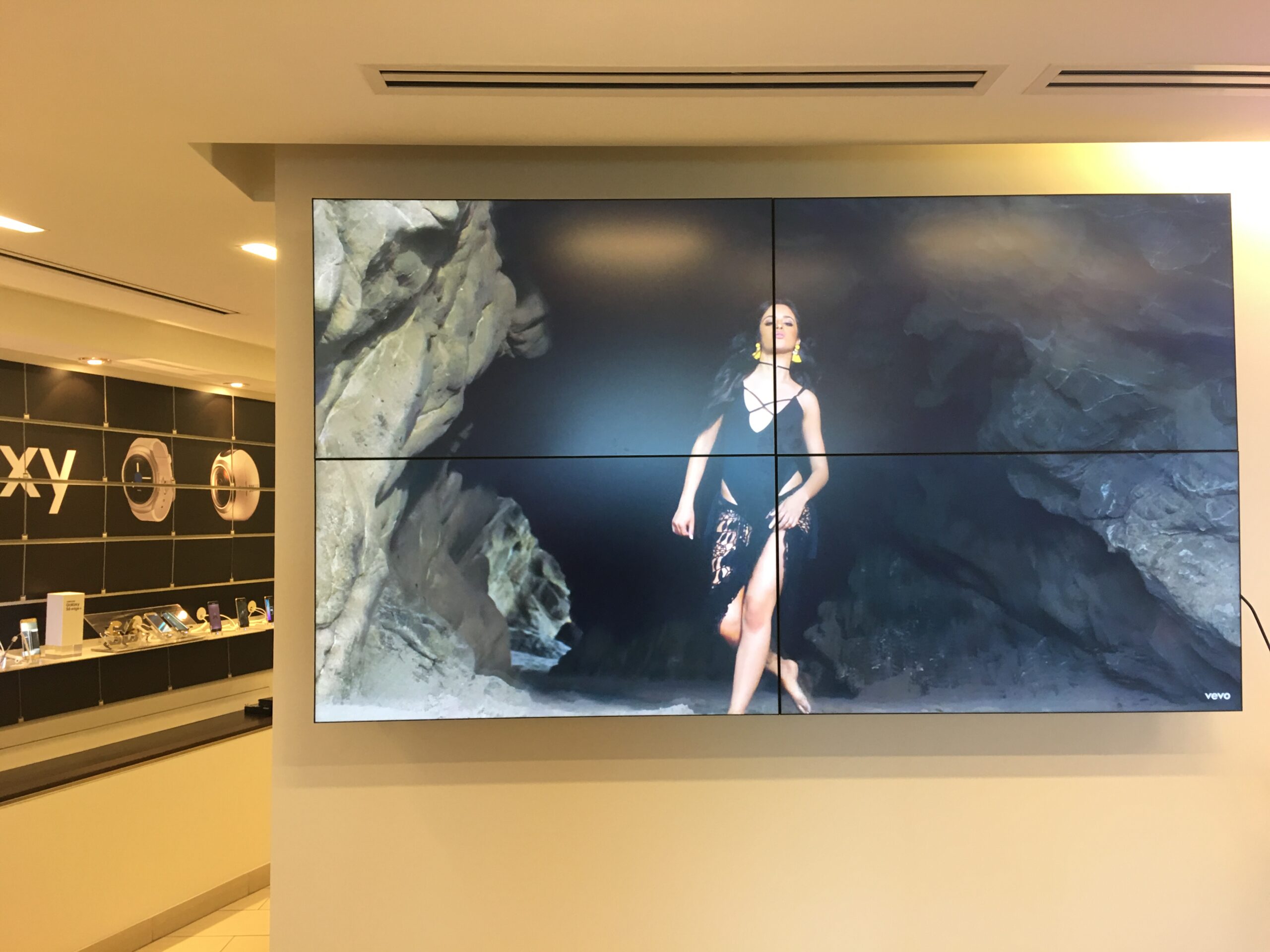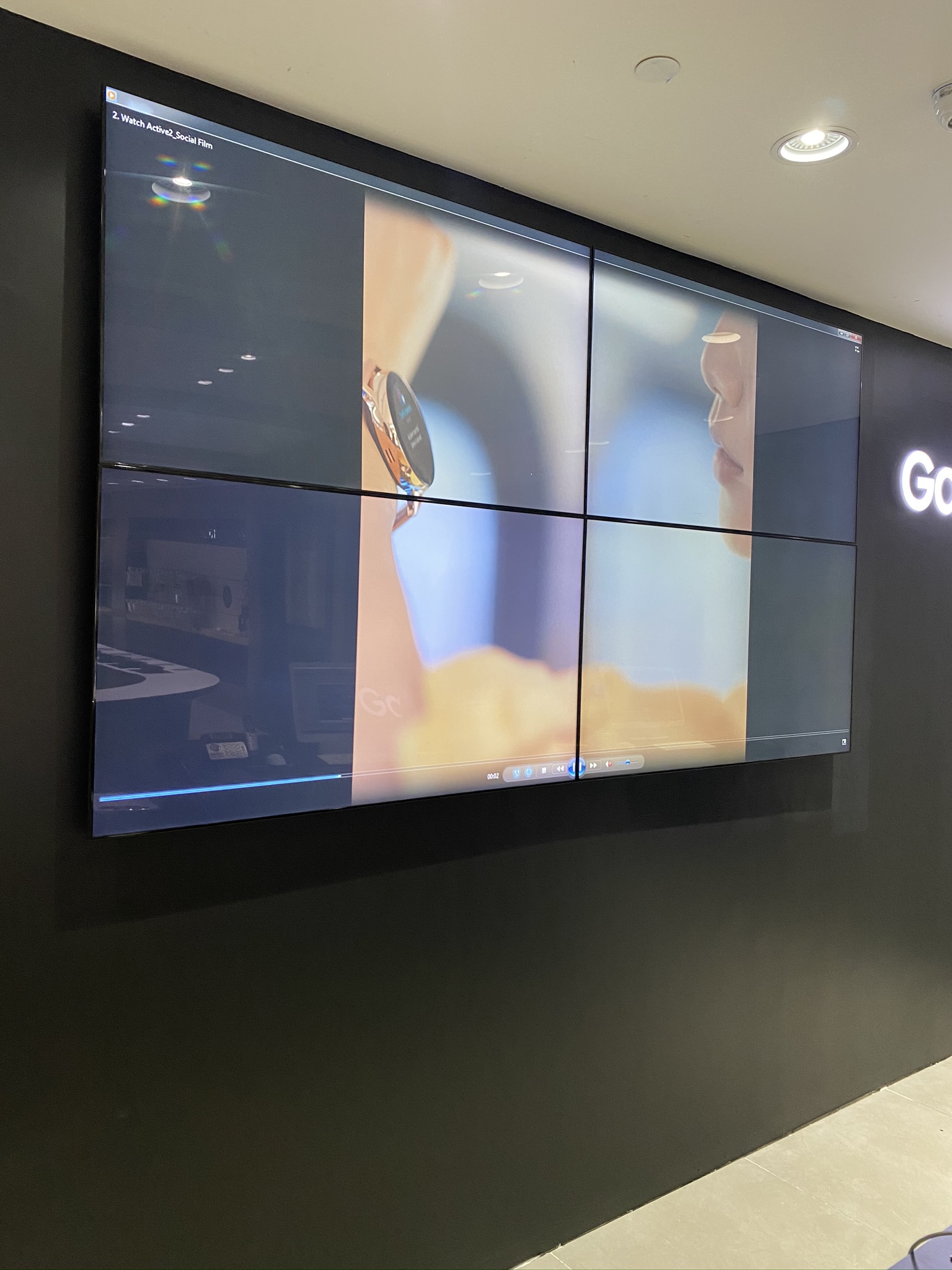 A video wall is a large display made up of multiple screens arranged together to form a single, cohesive image, commonly used in public spaces for impactful visual presentation.