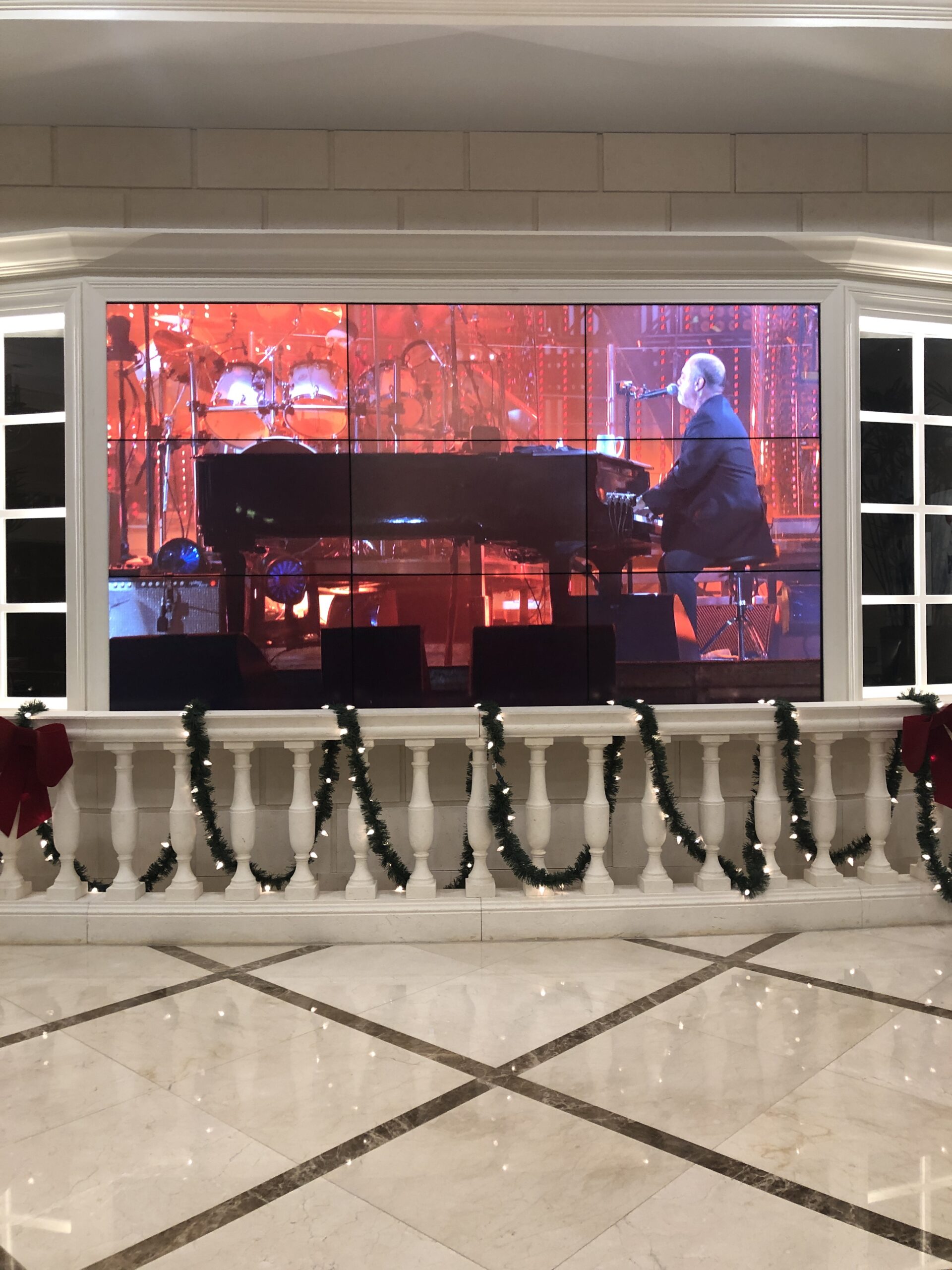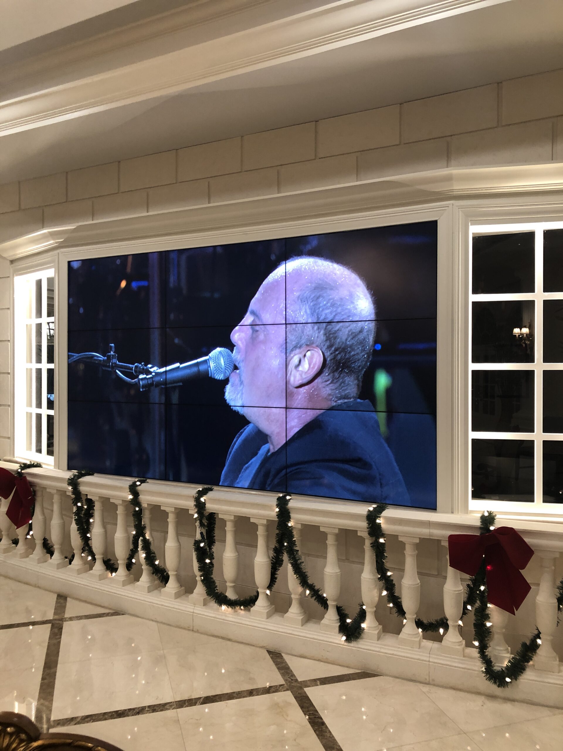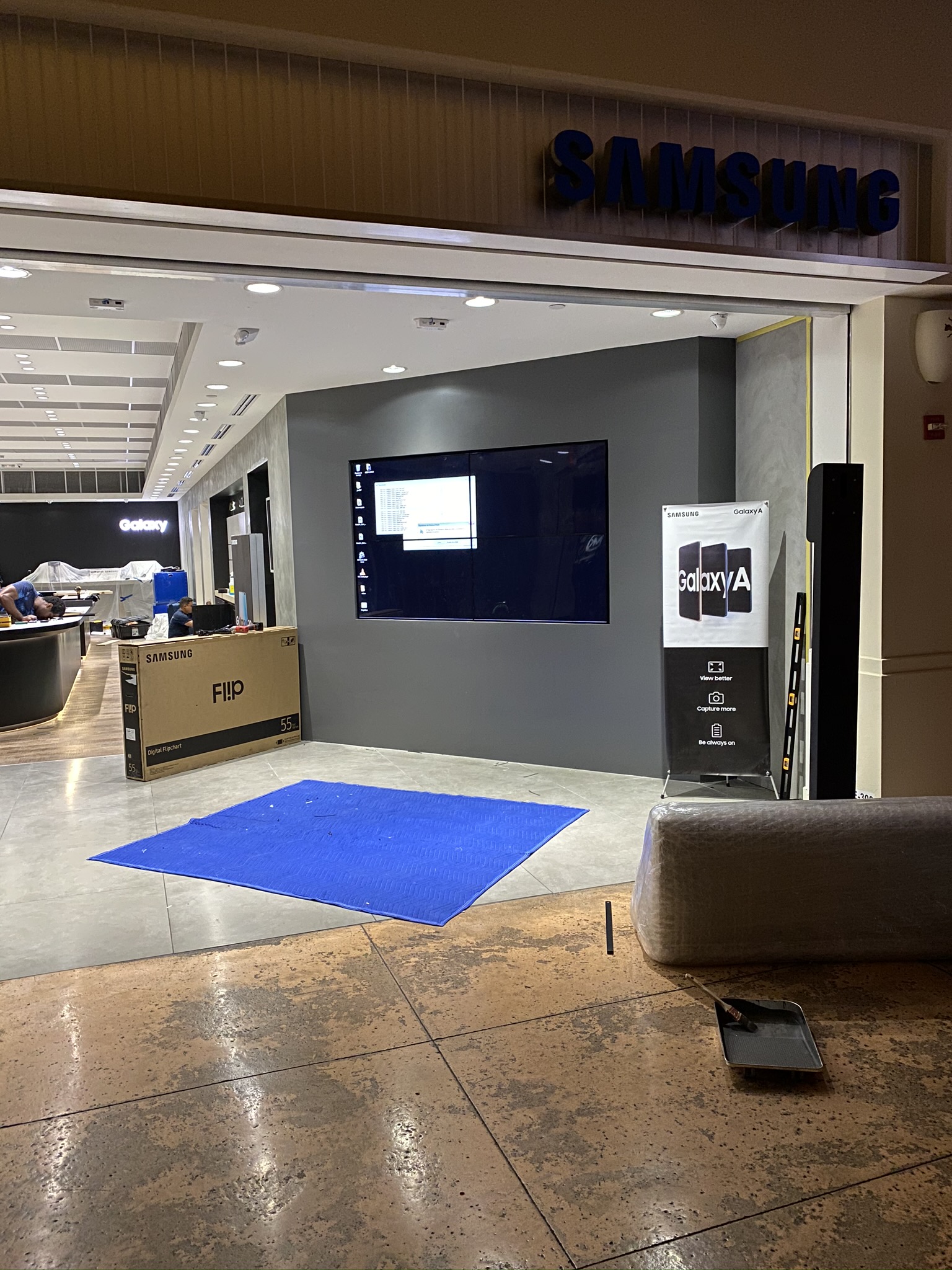 A video wall is a large display made up of multiple screens arranged together to form a single, cohesive image, commonly used in public spaces for impactful visual presentation.